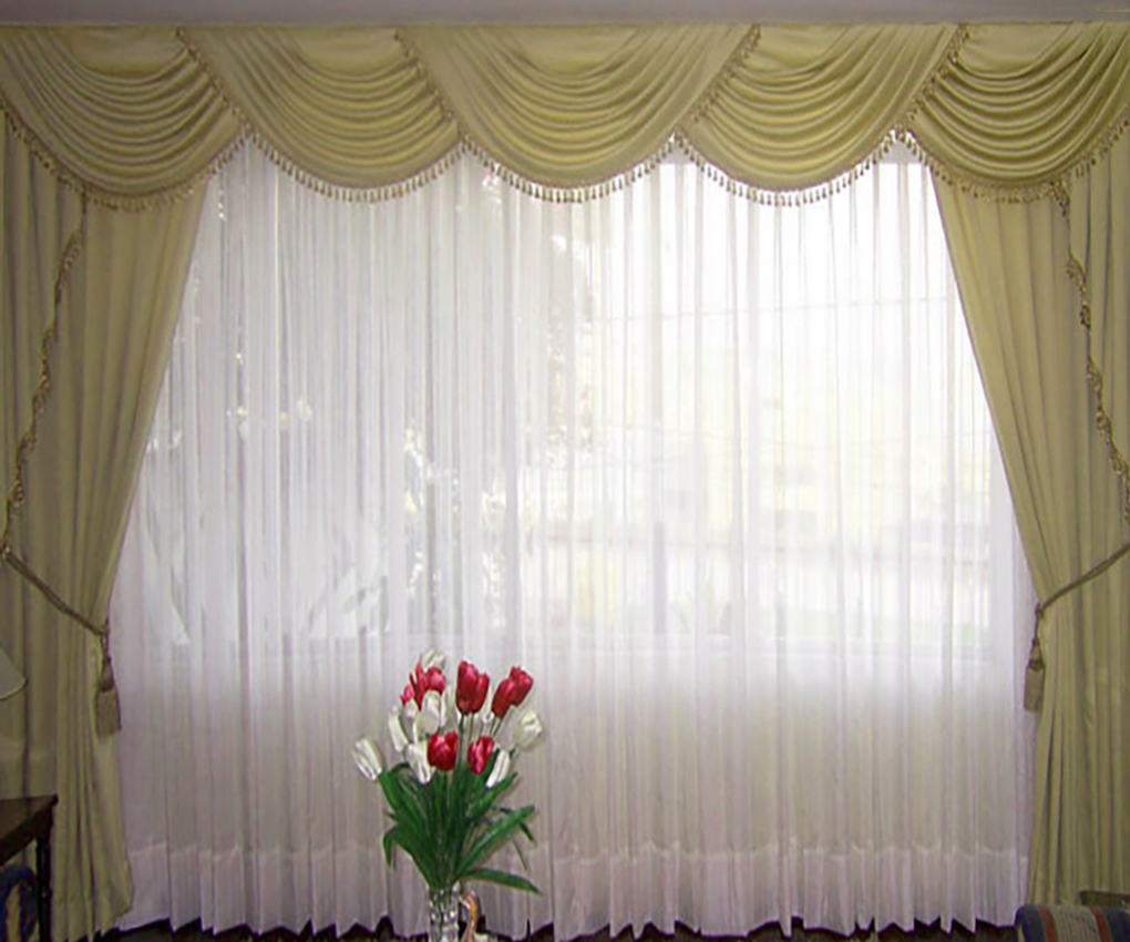 CORTINAS DE TELA, LAMBREQUINES FORRADOS Y COLGANTES DECORATIVOS.