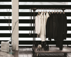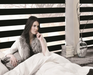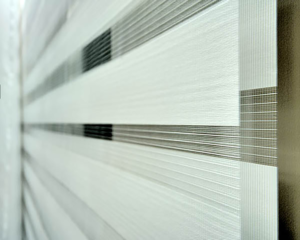 Gracias al novedoso diseño de la tela con franjas horizontales traslucidas y semi-opacas, se logra pasar progresivamente de la transparencia a la privacidad total con solo hacer un pequeño enrollamiento.